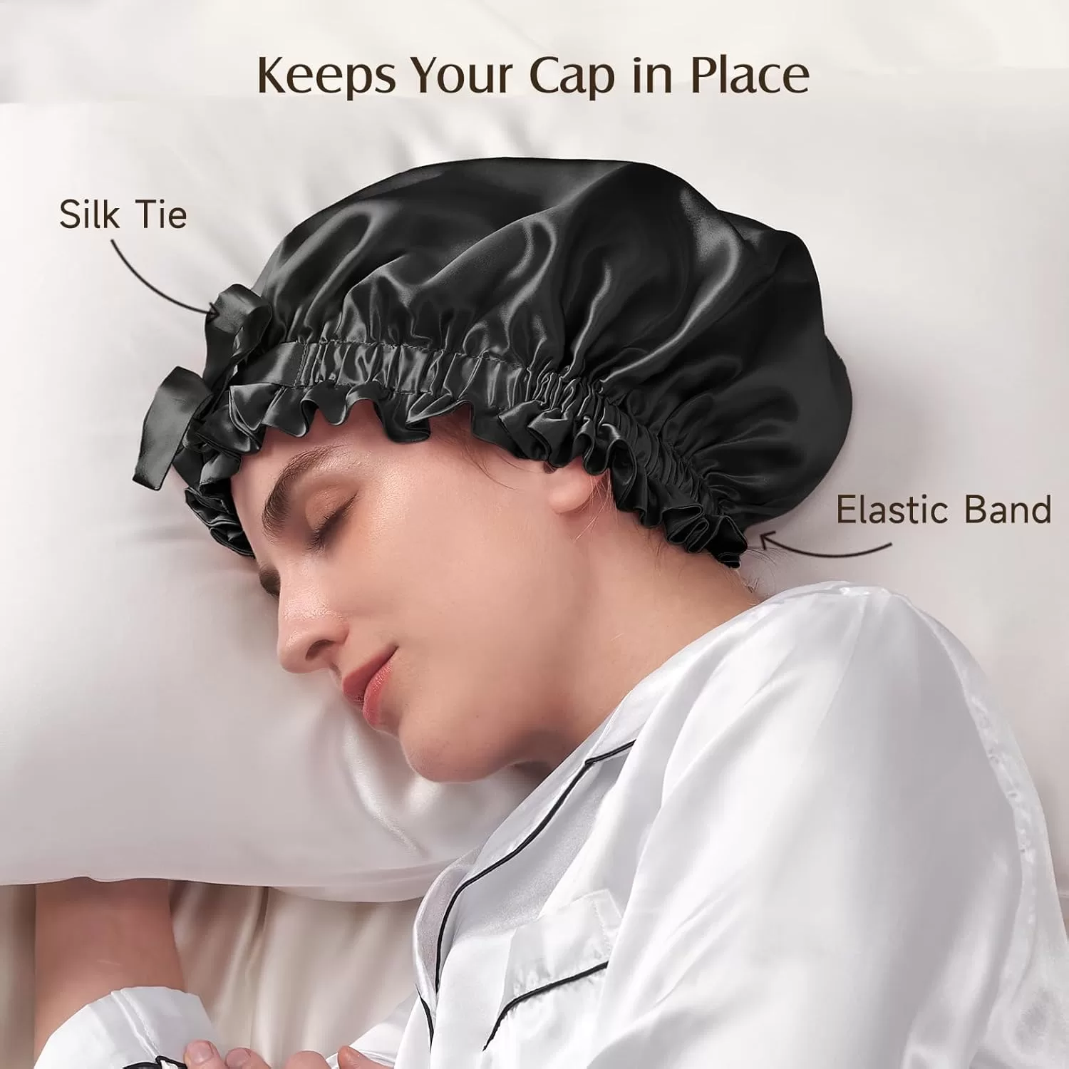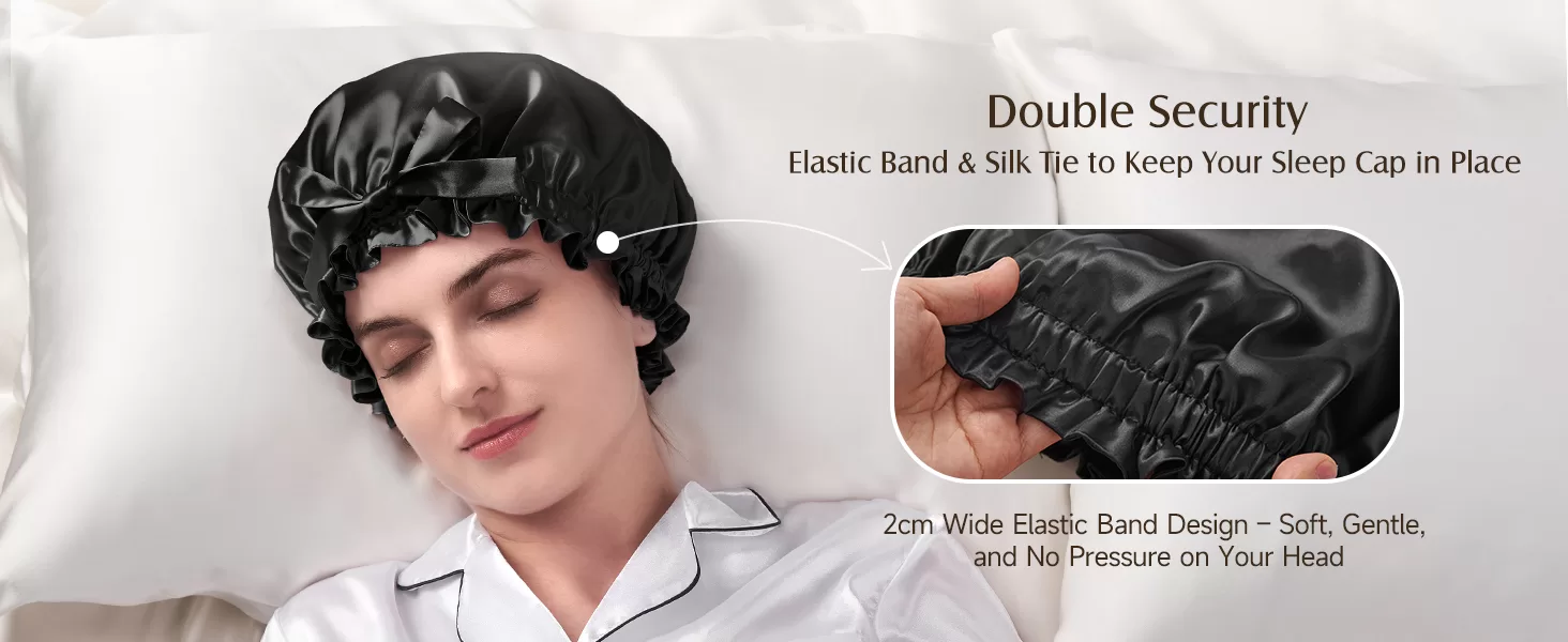 • Adjustable Elastic Band & Silk Tie - Double Secure for Stay on All Night: Features soft elastic band & 100% silk ties provides double fixation to effectively prevent falling off during sleep, gently secure without pressure marks.
