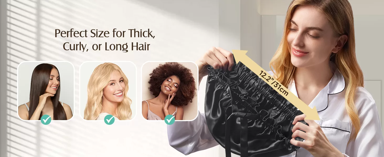 • Large Size - Fit Most: The diameter of YFONG silk hair wrap for sleeping is 12.2"/31cm with soft elastic band and silk tie, which is almost suitable for heads and hairs of all sizes. Whether you have short, medium-length, long hair, straight hair,braids, or curly hair, this silk bonnet for long hair prevents hair from becoming messy and maintains your hairstyle.