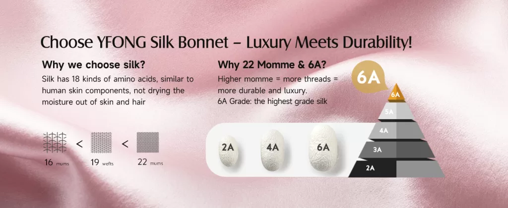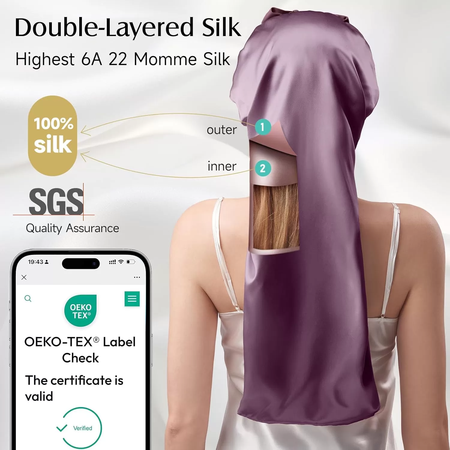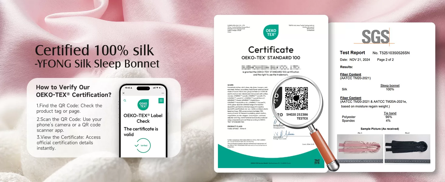 • Double Layered 100% 22 Momme Mulberry Silk Bonnet: Unlike single-layer silk or only a silk lining bonnet, our silk bonnet for long hair features a double-layered design with both inner and outer layers 100% crafted from 6A 22-momme mulberry silk. Provides you with double the hair care and the ultimate luxury wearing experience. Our silk hair bonnet fabric has passed the SGS authentication & OEKO certified, ensures real silk and harmless.