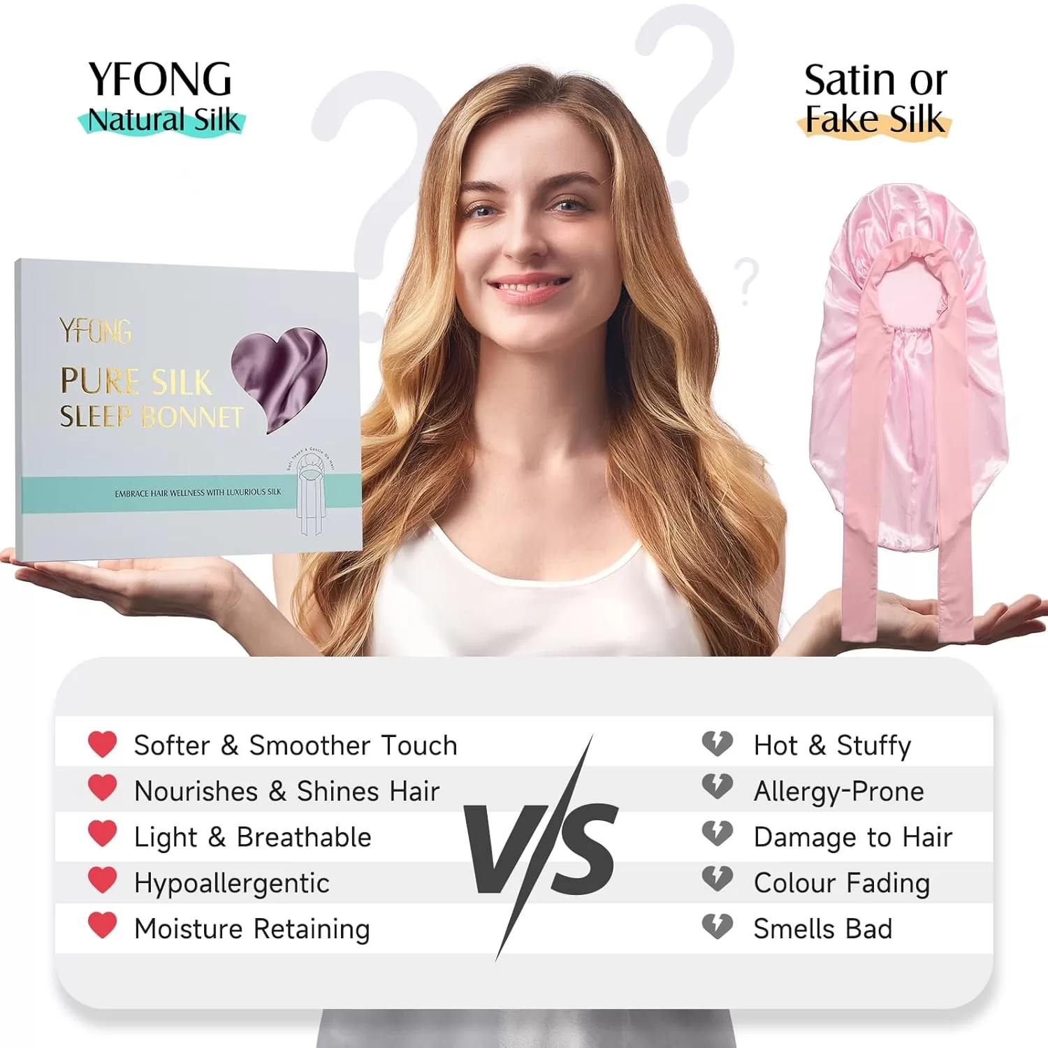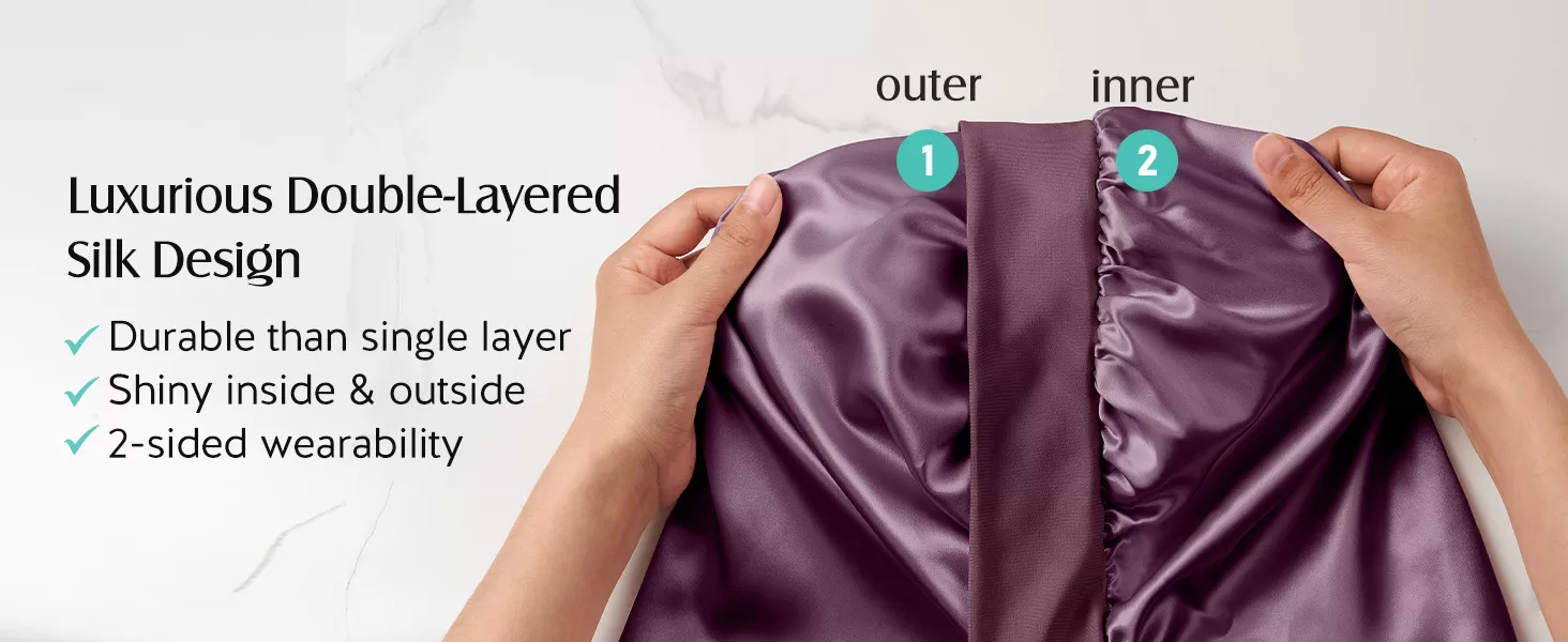 • Double Layered Silk Protection for Hair Wellness: The double silk layers create a slip surface that minimizes friction, shiny and smooth inside and out, preventing hair breakage and frizz. Silk’s moisture-locking properties combat dryness and split ends, delivering continuous hydration while you sleep. Wake up to no frizz, intact hairstyles.