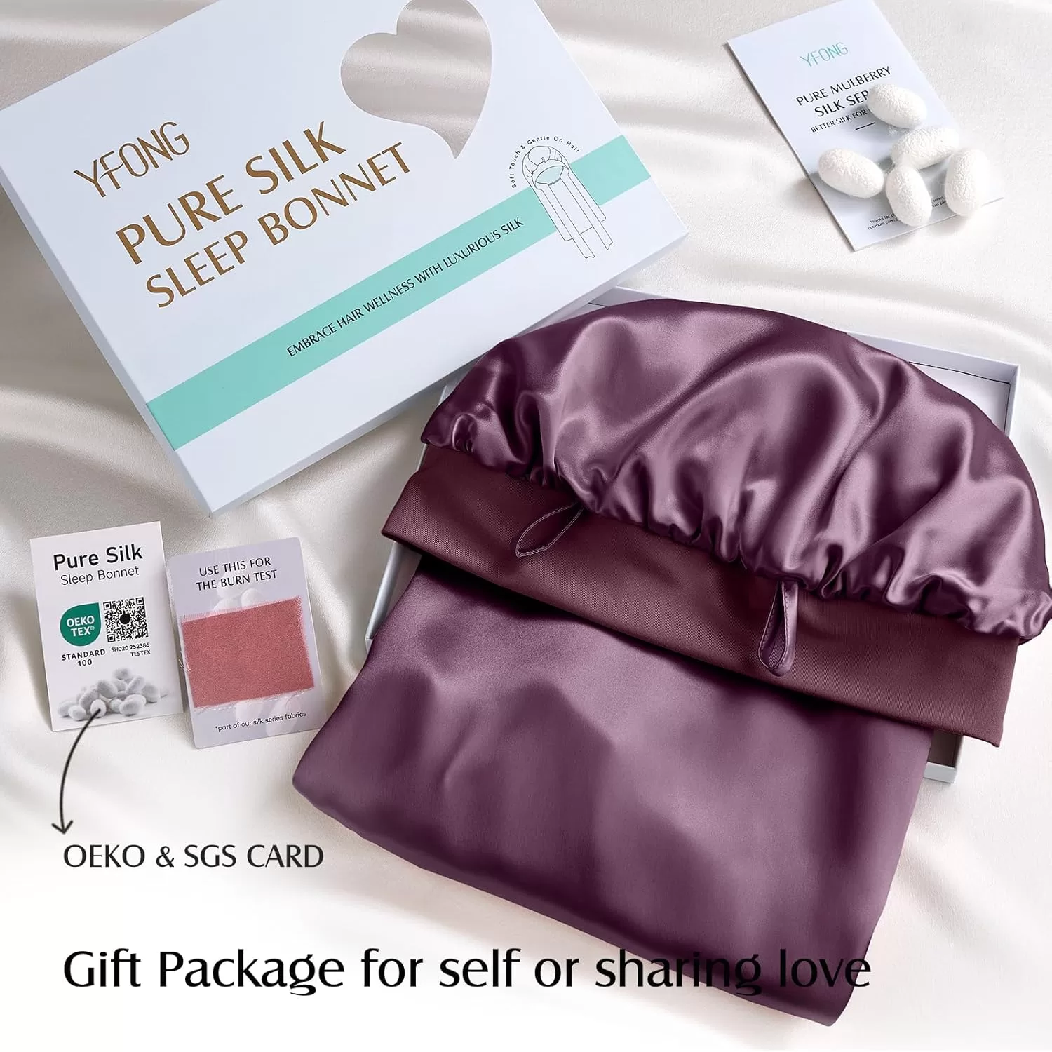 YFONG Double-Layered 100% Pure Mulberry Silk Bonnet for Long Hair, Purple